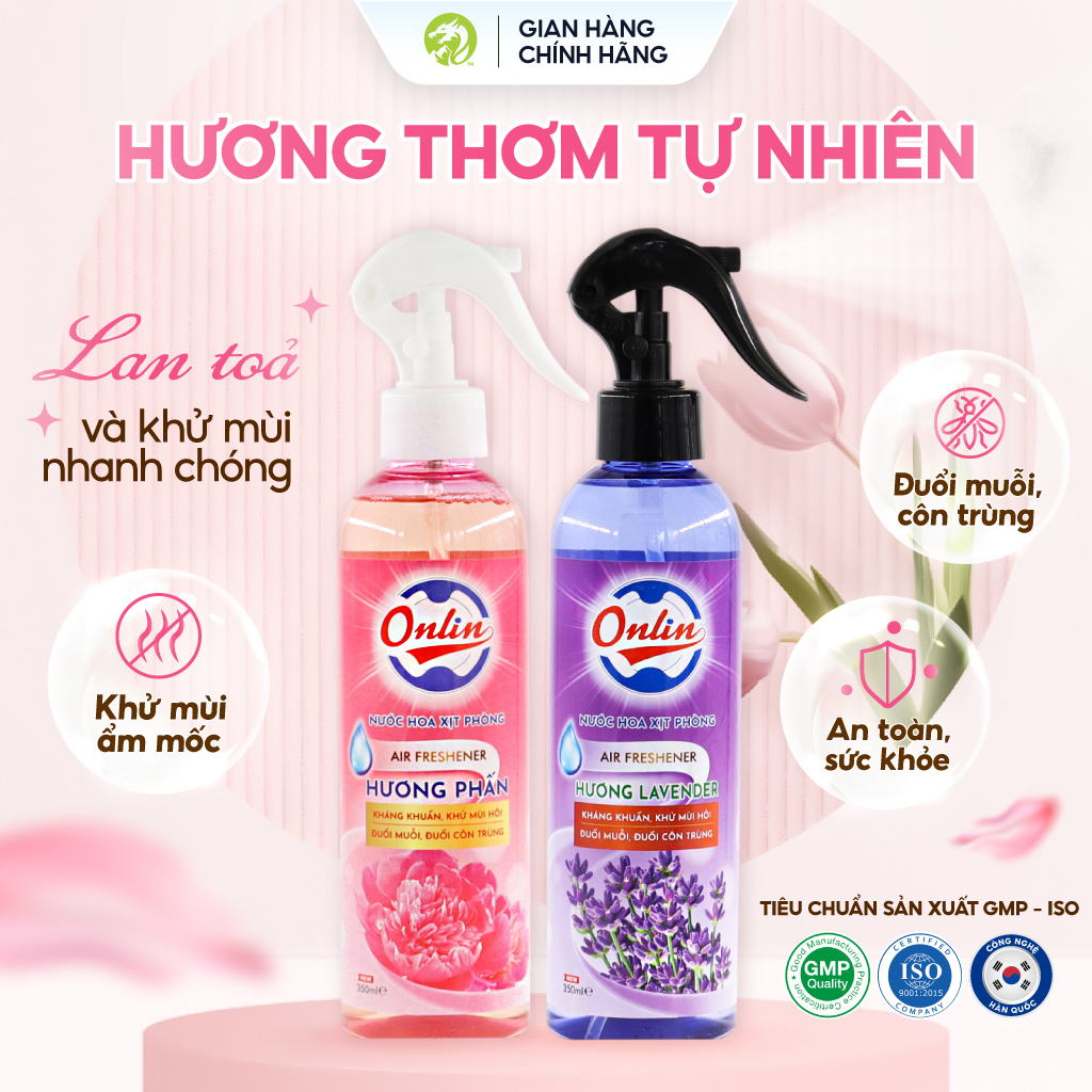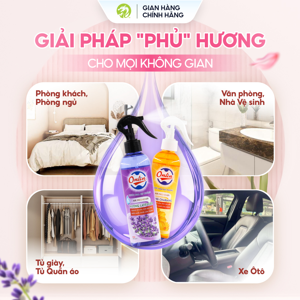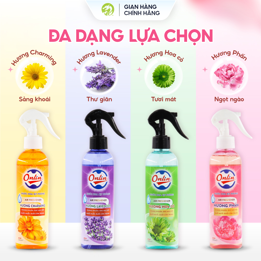 Nước hoa xịt phòng Onlin là giải pháp làm thơm và khử mùi nhanh chóng cho mọi không gian sống. Với công thức lan tỏa hương tức thì, lưu hương dài lâu và khả năng kháng khuẩn – khử ẩm mốc hiệu quả, sản phẩm giúp không khí trong nhà luôn sạch thoáng, tươi mát và dễ chịu suốt cả ngày.