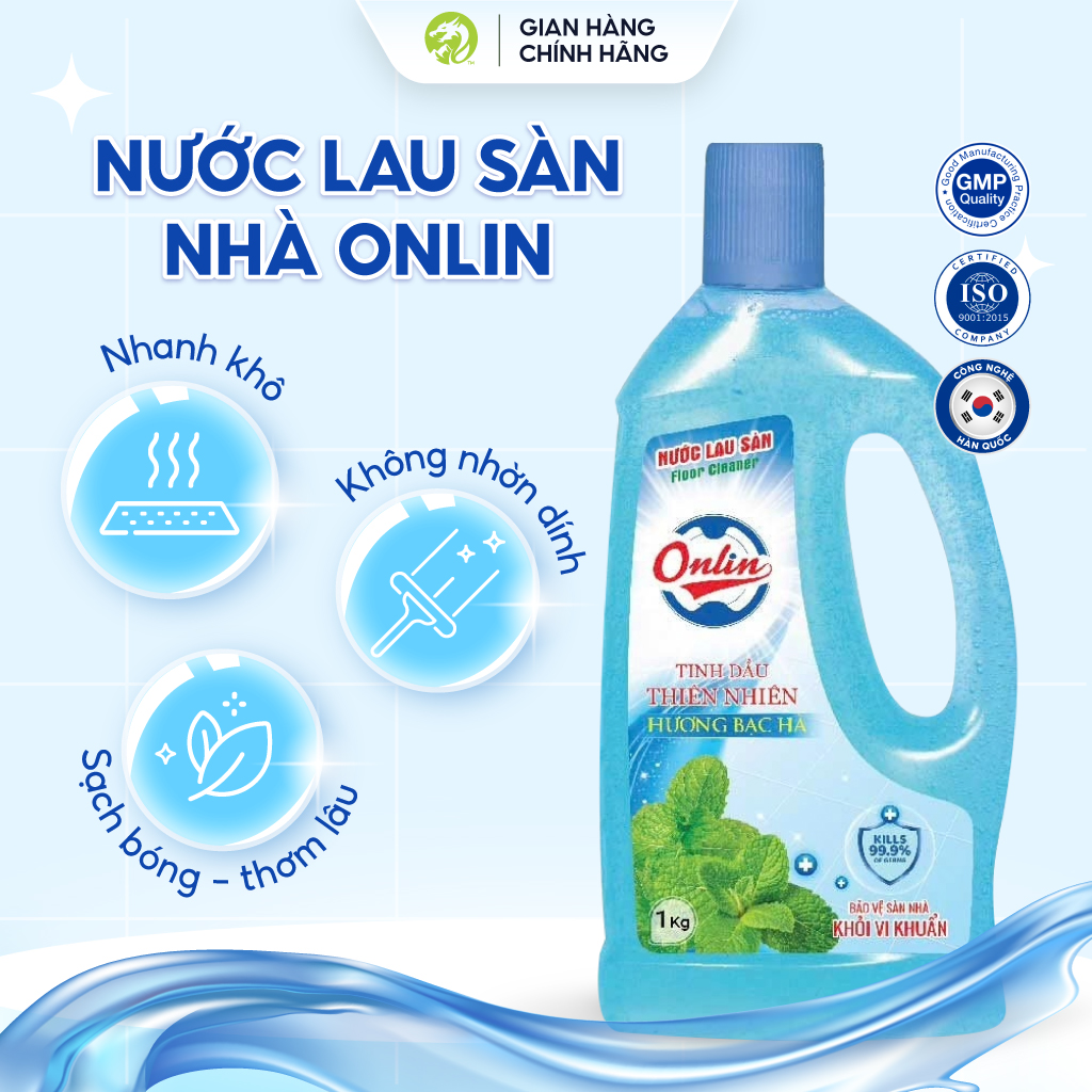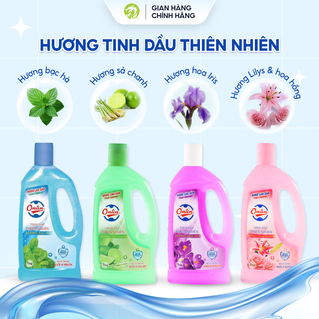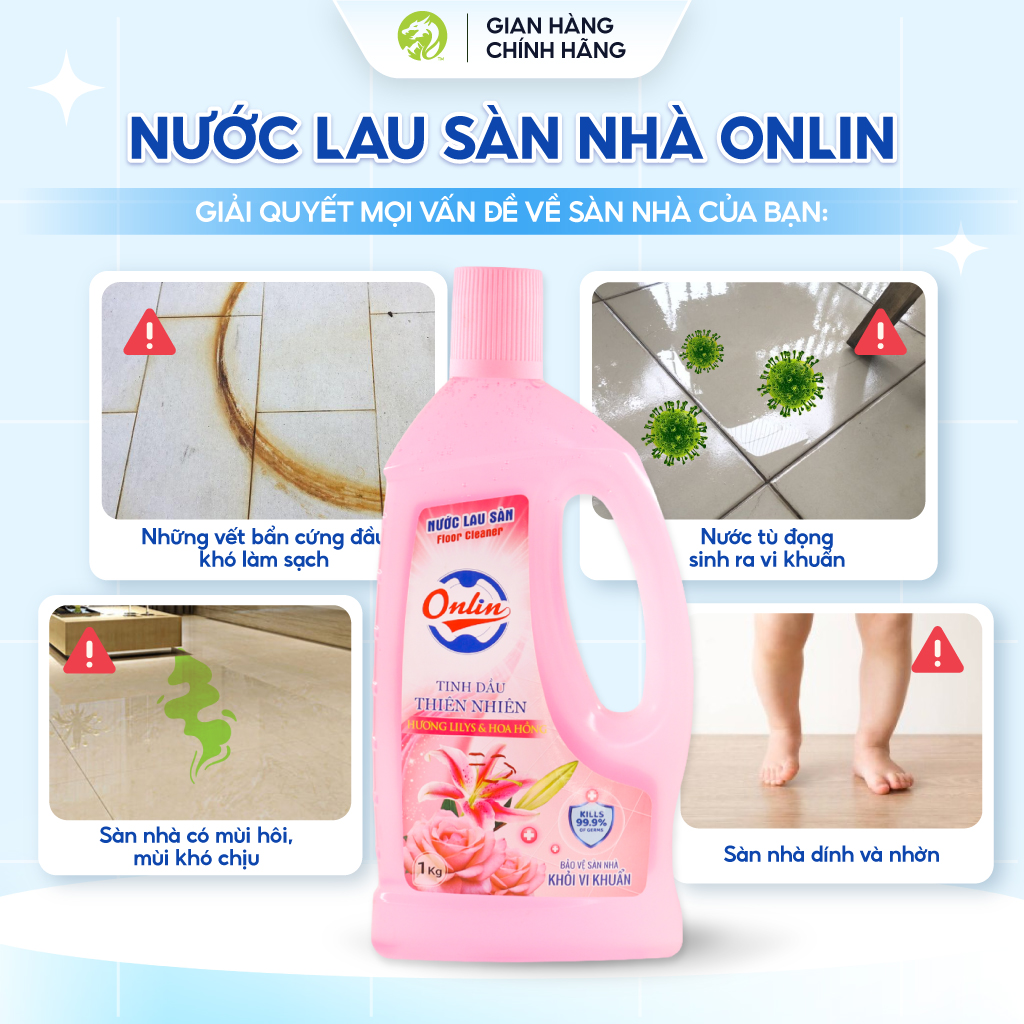 Với thành phần an toàn, hương thơm thiên nhiên dịu nhẹ, nước lau sàn Onlin không chỉ giúp làm sạch sàn gỗ, gạch men, đá hoa cương mà còn mang lại không gian sống trong lành, dễ chịu, đồng thời hạn chế côn trùng và mùi hôi khó chịu trong nhà.